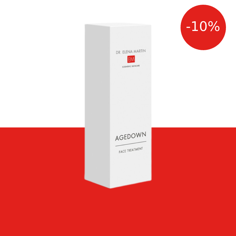 Agedown este un amestec de numeroase vitamine, peptide, niacinamide și retinol cu textură ușoară.